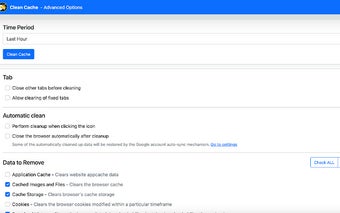 Clean Cache: Cookies, History, Cache & Filesis a free software for Chrome, that makes part of the category 'Add-ons & Tools'.